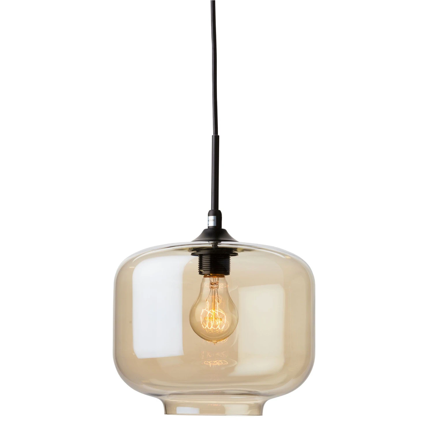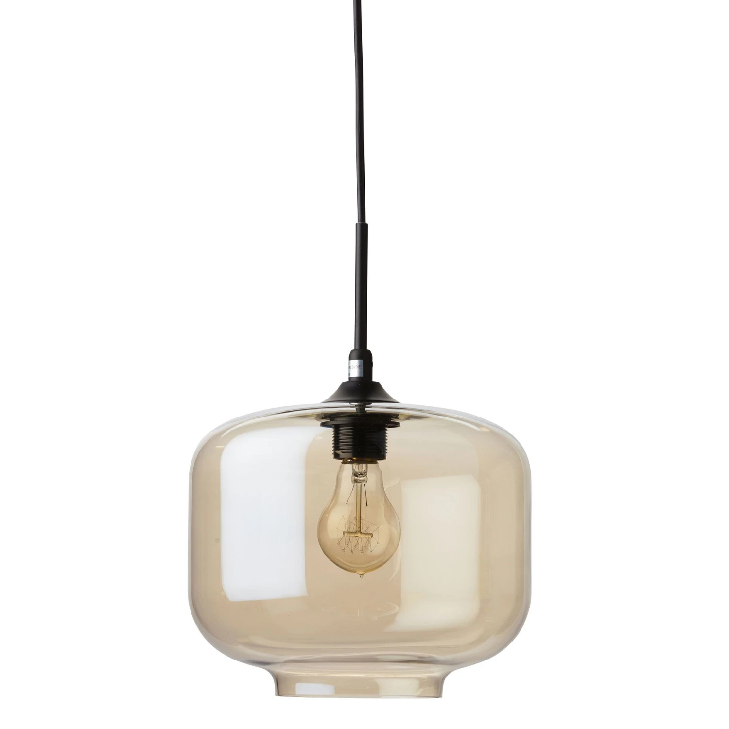 The Charles Pendant Lamp from Nuevo features a champagne colored glass shade with a black power cable and black powder coated steel canopy. The overall height is adjustable to a maximum 103.5″. Requires 1 E26 medium base 75 watt max bulb (not included).