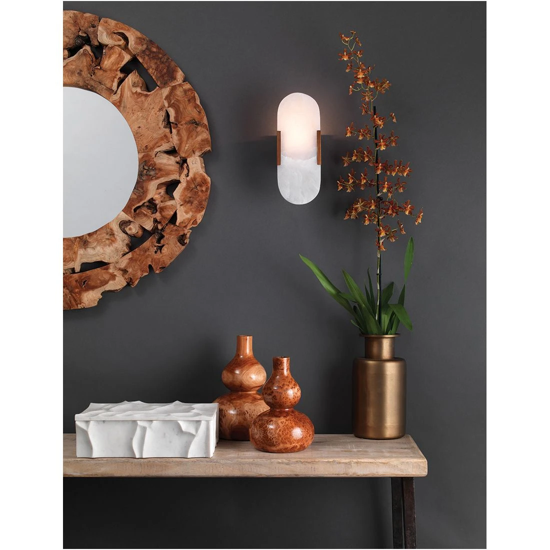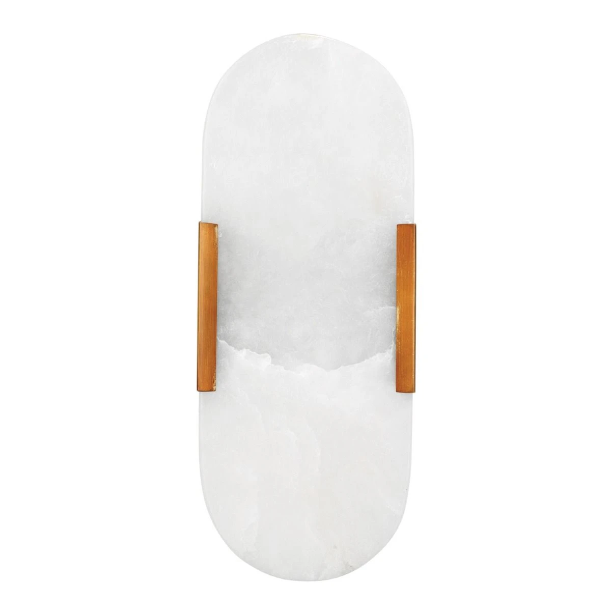 Finish will vary, alabaster is a natural stone with naturally occurring veining, colors and patterns, each piece is unique. Can be hung vertically or horizontally. Backplate: 4.5″”square x 1″”d. Backplate Finish: Antique Brass. Backplate Material: Steel. ”