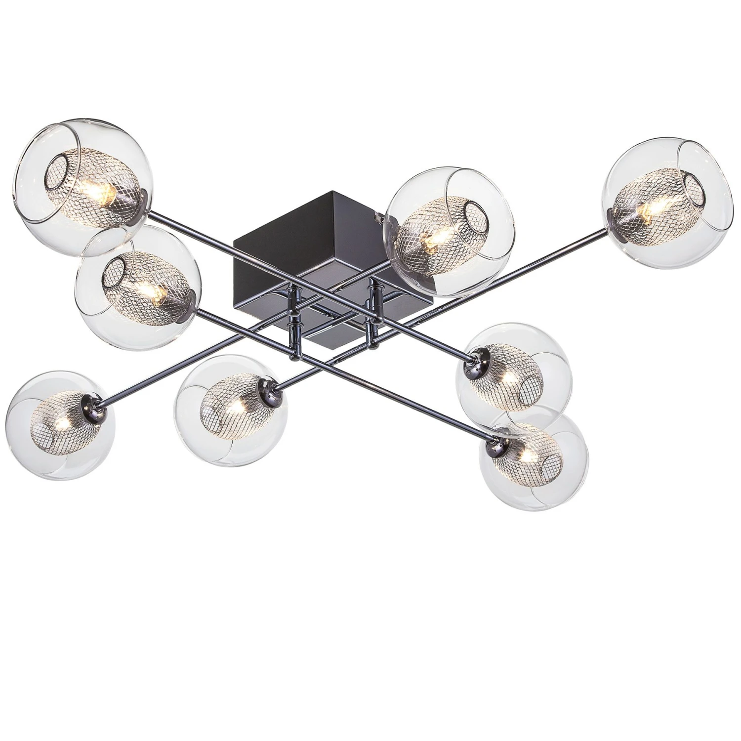 The Estelle 8 Ceiling Flush Mount from Nuevo Living features a chromed steel canopy and body. With 4.5″ glass shades with perforated steel diffusers. Requires 8 G9 pin 40 watt max bulbs (included).