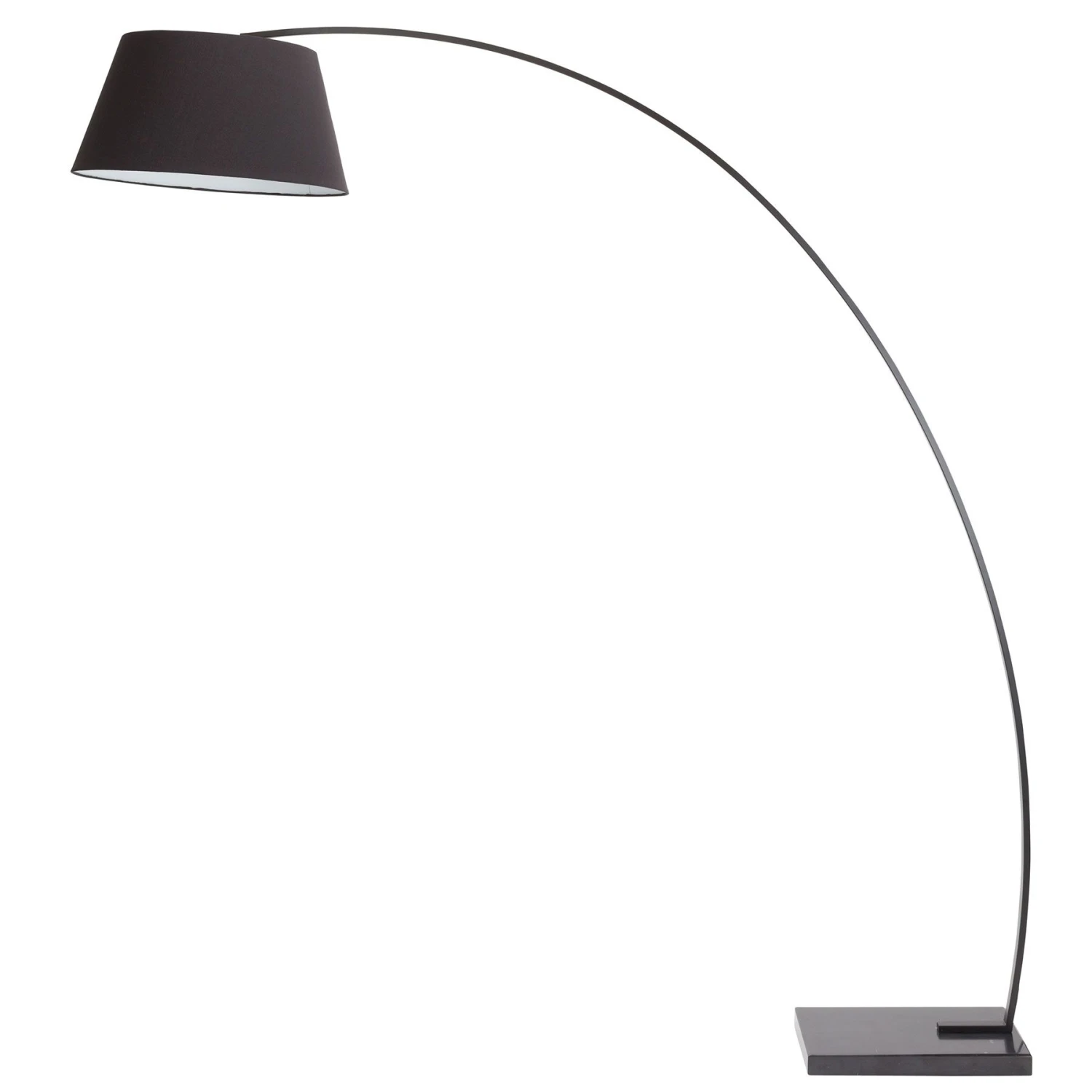 The contemporary inspired Evan Floor Lamp from Nuevo features a black marble base and powder coated steel stem. The fabric shade houses 1 E26 medium base 200 watt max bulb (not included). The cord is 76″ and color-matched with an inline dimmer switch.