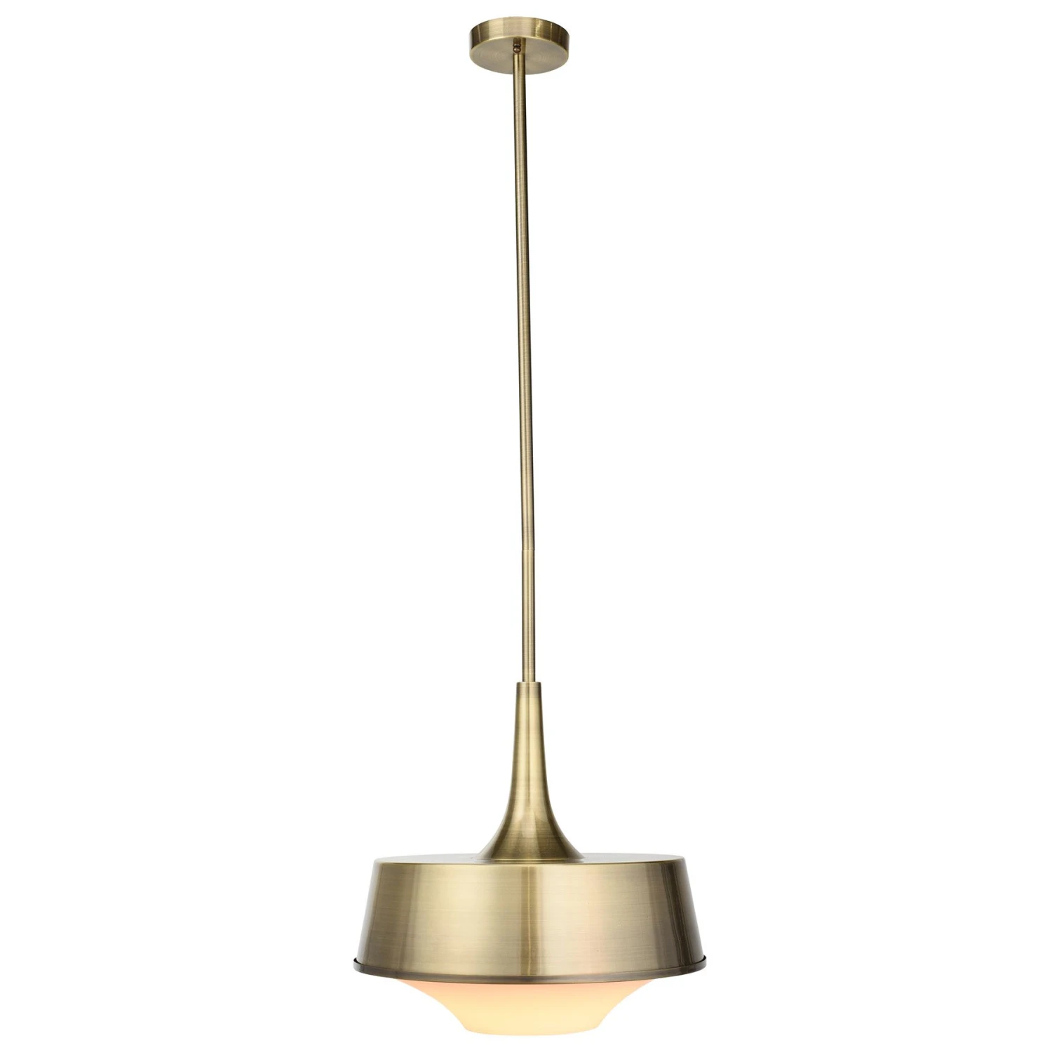 The Harper Pendant from Nuevo features antique gold finished canopy and shade. The overall height is adjustable to a maximum 100″. Requires 1 E26 medium base 150 watt max bulb (bulb not included).