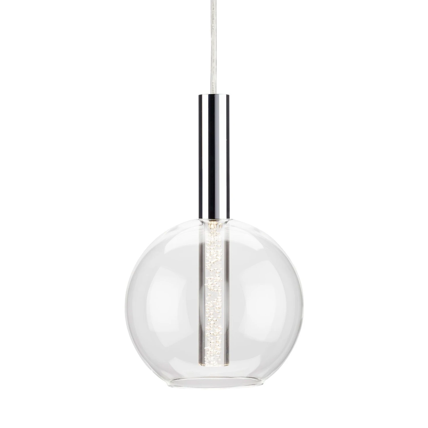 The Irene Pendant from Nuevo features a chromed steel canopy with a clear power cord. The clear glass shade has a chromed steel fixture with an acrylic diffuser. The overall height is adjustable to 102″ maximum. Includes 1 5 watt LED bulb.