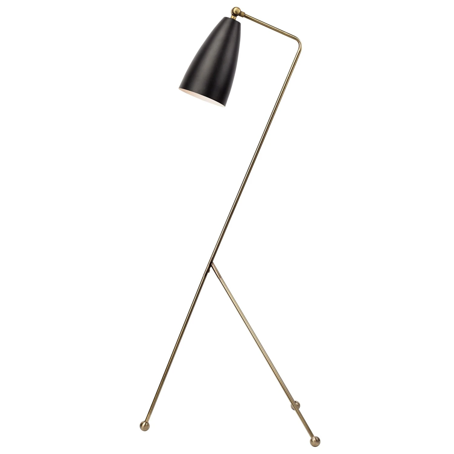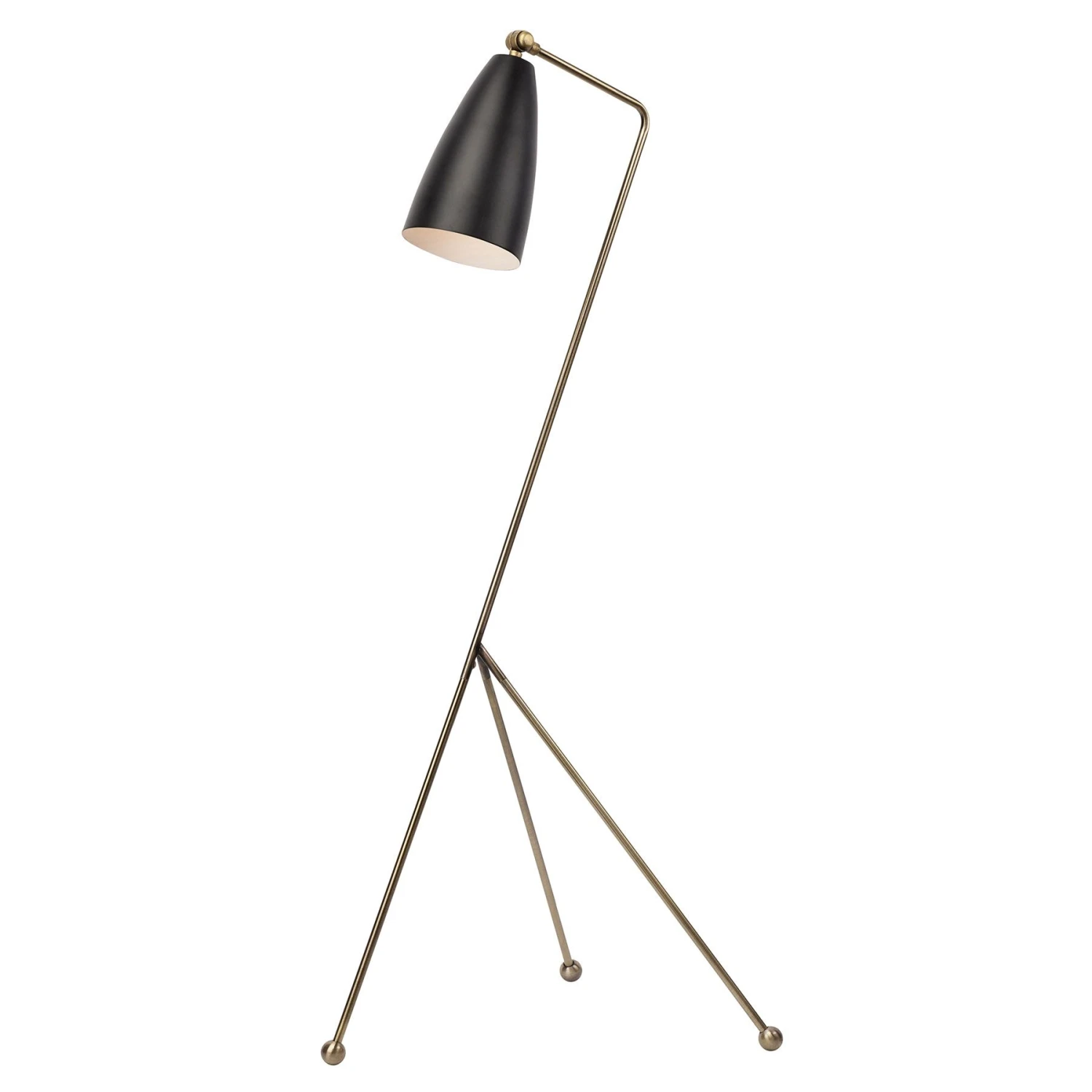 The Lucille Floor Lamp from Nuevo is made from a stainless steel frame with an antique brass and matte black finish. The shade is adjustable and requires 1 E26 60 watt max bulb (not included). Includes an inline on/off switch.