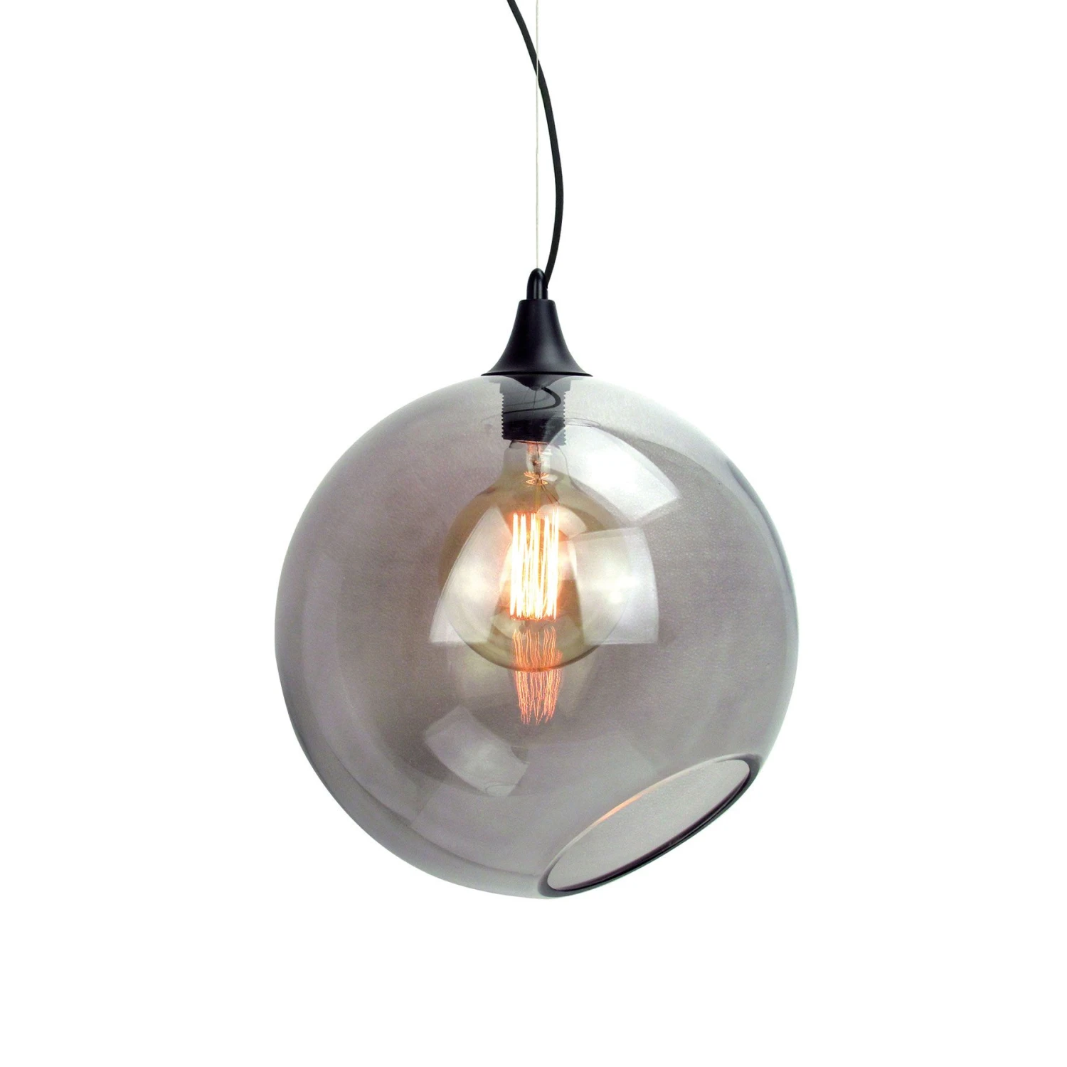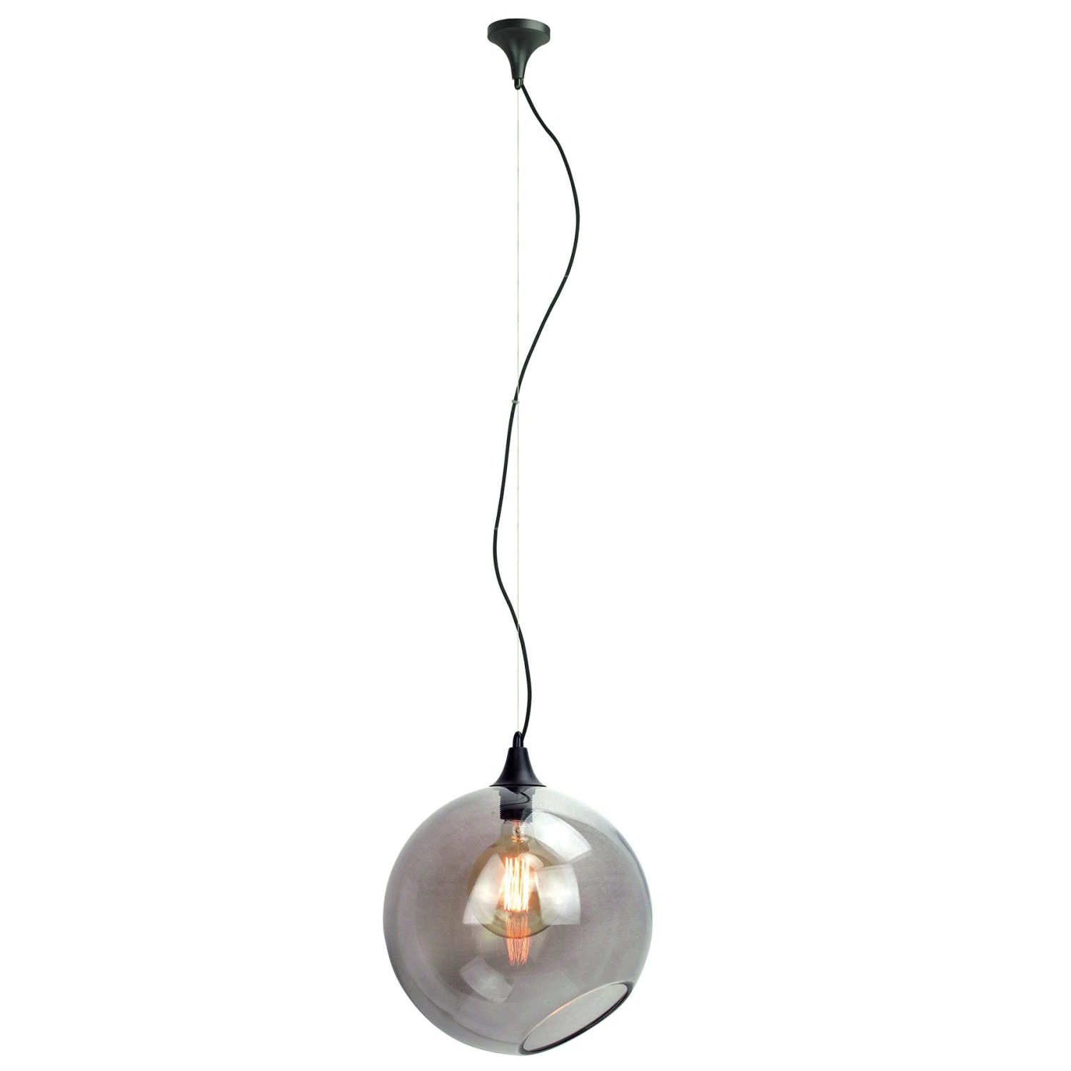 The Sphere Pendant from Nuevo is a contemporary glass pendant with a black canopy, lamp holder, and power cable. The overall height is adjustable to a maximum 111″. Requires 1 E26 medium base 100 watt max bulb (not included).