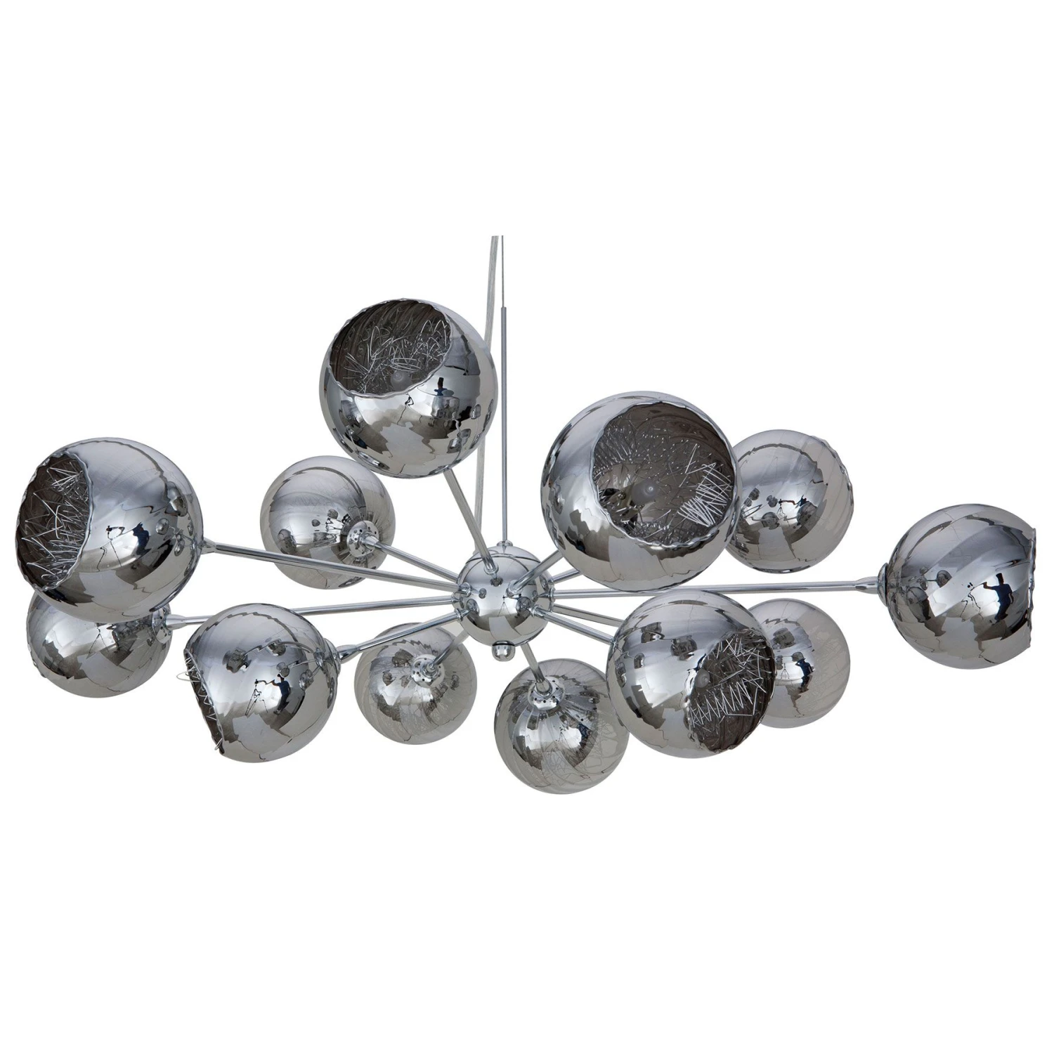 The Sylvie Pendant Lamp from Nuevo Living is a 32″ diameter modern chandelier made from chrome finished steel globular fixtures. With hand blown vacuum plated borosilicate glass. The interiors feature anodized aluminum wire decoration. Overall height is adjustable to a maximum 111.25″. Requires 12 G9 25 watt bulbs. Bulbs ARE included.